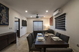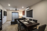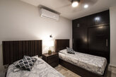Hermoso departamento de lujo para 1 a 4 personas en una de las mejores zonas residenciales de la Paz. El edificio cuenta con gimnasio y alberca para que pasen unos días tranquilos e inolvidables en compañía de sus seres queridos. El departamento cuenta con 3 minisplits, 3 TV con Sky, WI-FI, dos recámaras y dos baños, cocina completamente equipada, estacionamiento privado. Cuenta con seguridad las 24 hrs.
