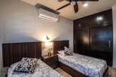 Hermoso departamento de lujo para 1 a 4 personas en una de las mejores zonas residenciales de la Paz. El edificio cuenta con gimnasio y alberca para que pasen unos días tranquilos e inolvidables en compañía de sus seres queridos. El departamento cuenta con 3 minisplits, 3 TV con Sky, WI-FI, dos recámaras y dos baños, cocina completamente equipada, estacionamiento privado. Cuenta con seguridad las 24 hrs.